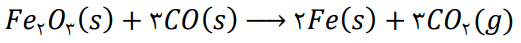 البته، برای استخراج آهن از آهن (III)اکسید از واکنش این ماده با گاز کربن مونوکسید بر اساس معادله ی زیر نیز می توان استفاده کرد: