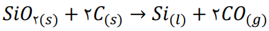 سیلیسیم، عنصر اصلی سازنده سلولهای خورشیدی است که طی واکنش زیر تهیه می شود. با توجه به معادله این واکنش، میتوان گفت کربن واکنش پذیرتر از سیلیسیم است. دقت کنید که فراورده ی واکنش، گاز کربن مونوکسید است نه کربن دی اکسید.