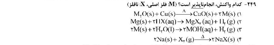 • در شرایط یكسان، میزان واکنش پذیری چند مورد از عناصر معروف به صورت زیر است: