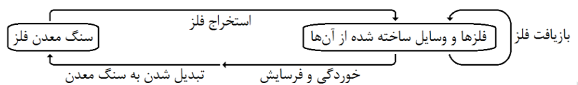 •فلزها از جمله منابع تجدیدناپذیر هستند.آهنگ مصرف و استخراج فلزها بیشتر از آهنگ بازگشت آن ها به طبیعت به شكل سنگ معدن است.