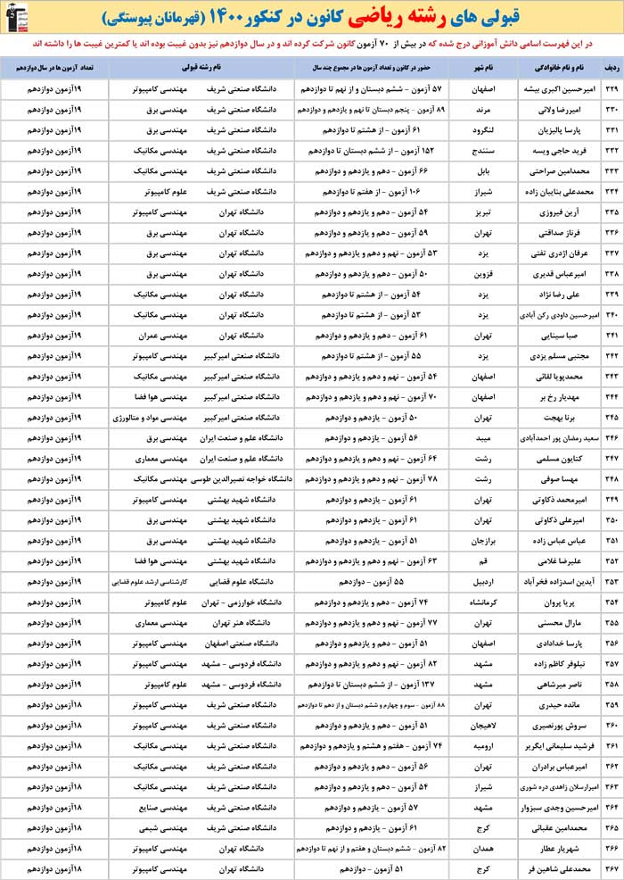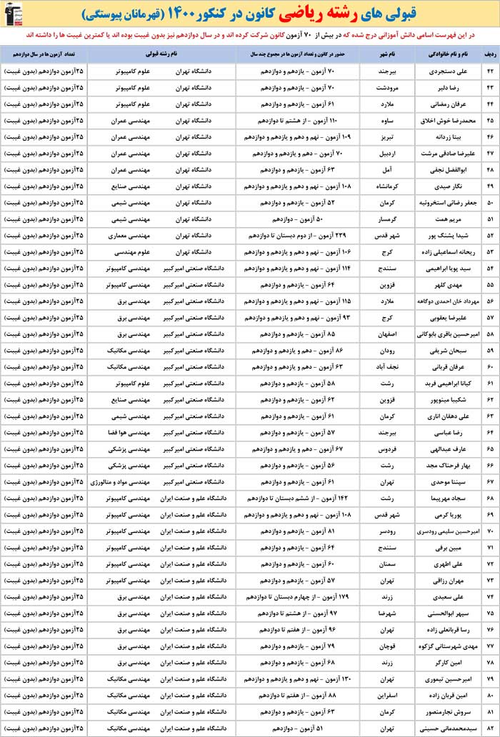 قبولی های 1400 کانون رشته ریاضی را با سه روش می توانید مشاهده کنید:
