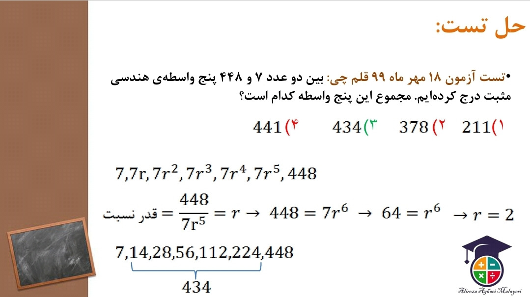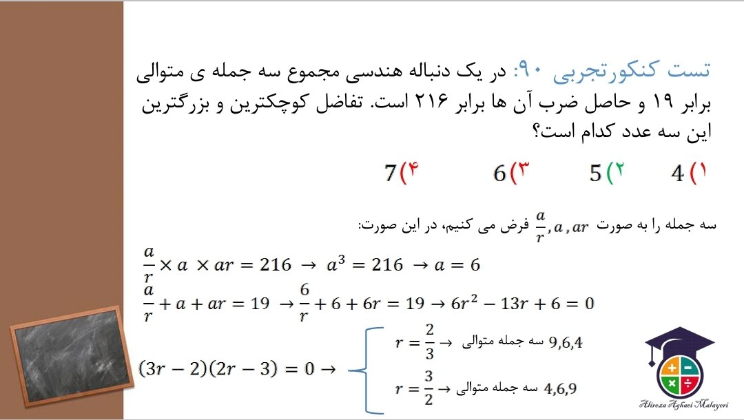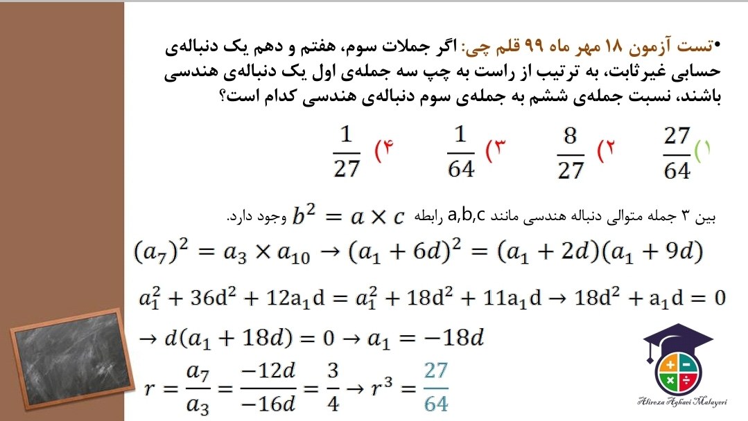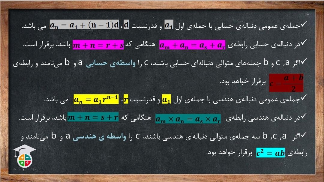 اسلایدهای زیر خلاصه ای از نکات مبحث دنباله های حسابی و هندسی به همراه چند تست چالشی و مهم هستند.