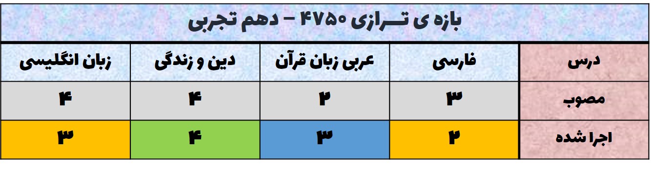 با عرض سلام خدمت شما دانش آموزان عـــزیز دهمی ریاضی و تجـربی جدول زیر مشخص می کند که دانشآموزان محدوده ترازی 4750 از هر 10 سوال به چند سوال (در هر درس) توانستهاند پاسخ دهند:
