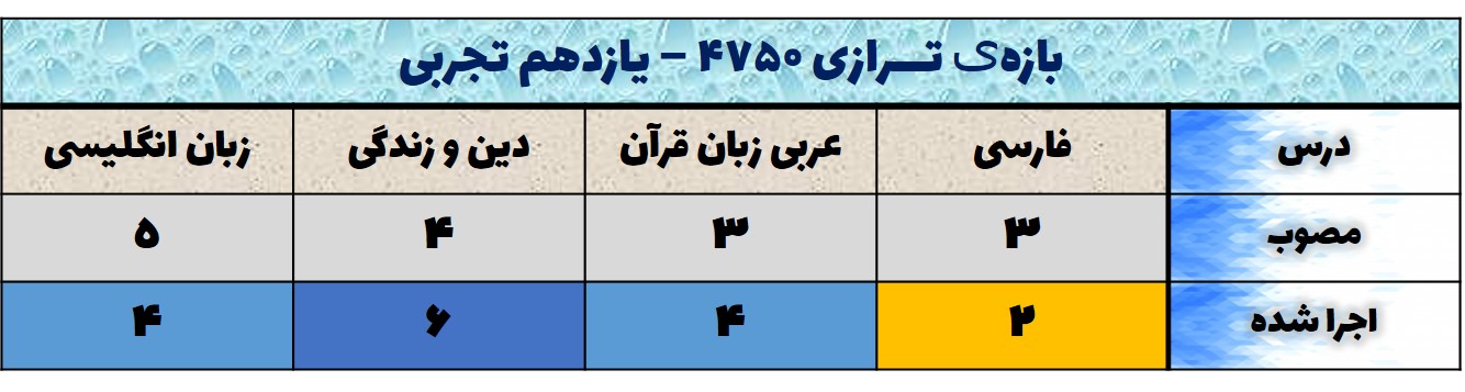 با عرض سلام خدمت شما دانش آموزان عـــزیز یازدهمی ریاضی و تجـربی جدول زیر مشخص می کند که دانشآموزان محدوده ترازی 4750 از هر 10 سوال به چند سوال (در هر درس) توانستهاند پاسخ دهند: