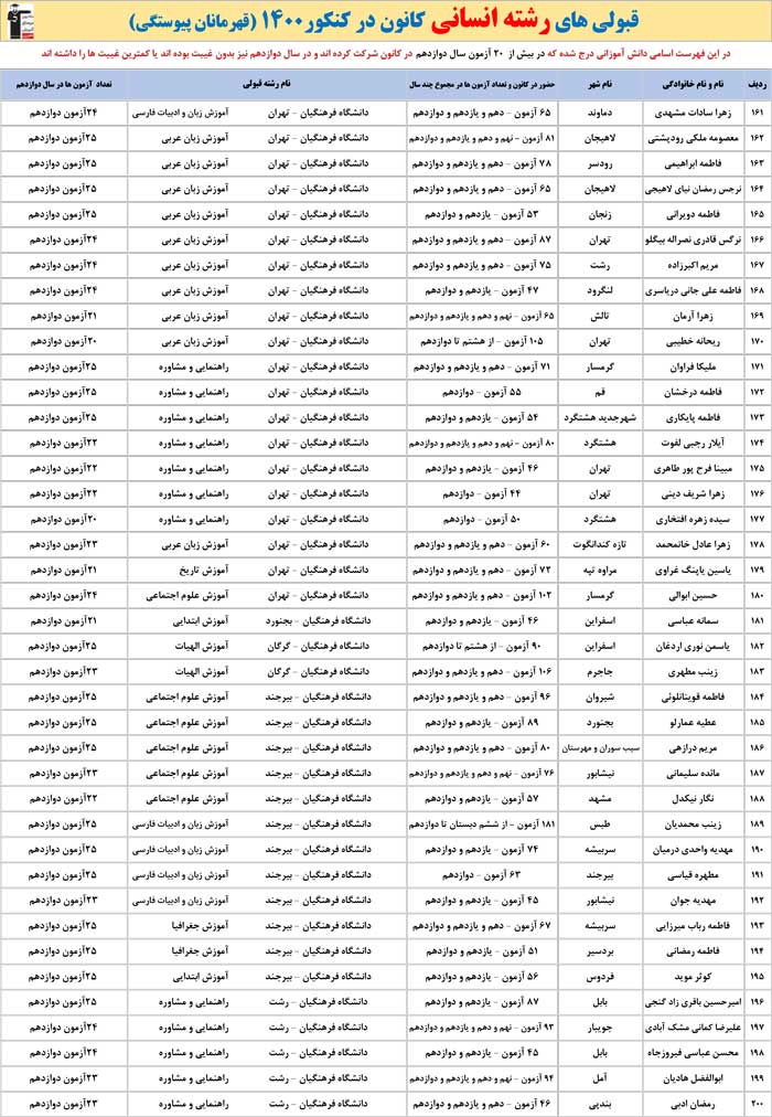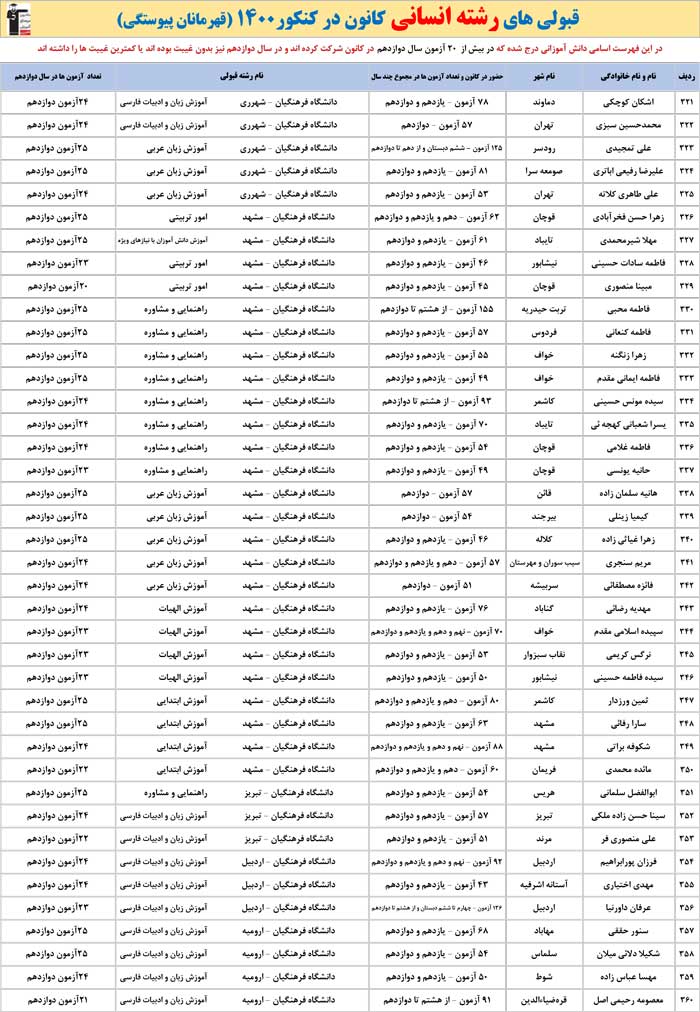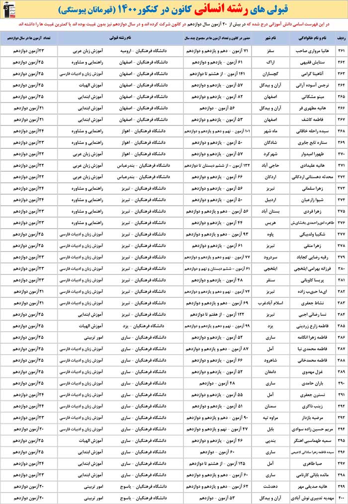 قبولیهای دانشگاه فرهنگیان کانون در کنکور 1400