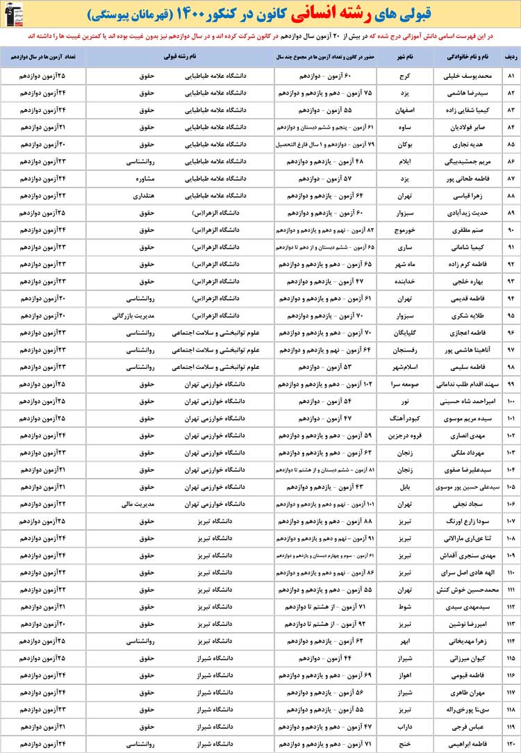 قبولی های 1400 کانون رشته انسانی را با سه روش می توانید مشاهده کنید: