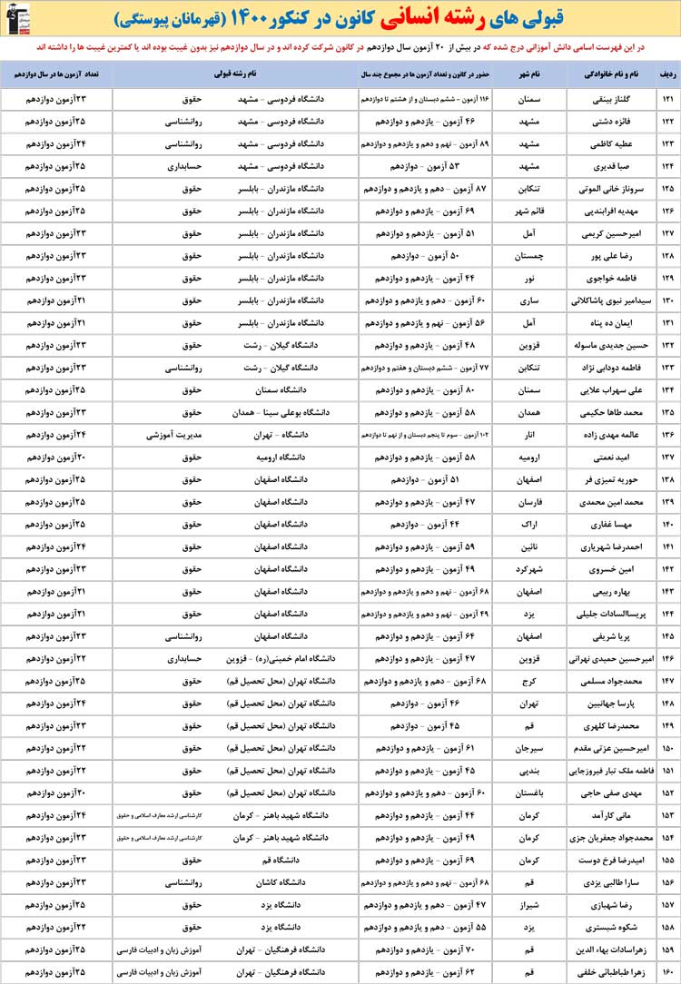 قبولیهای تجربی غیر پزشکی کانون در کنکور 1400