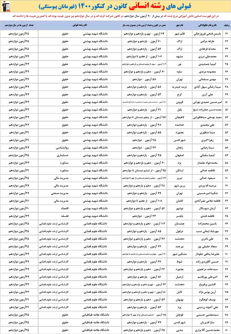 روش سوم : اسامی قبولی ها ی انسانی به تفکیک دانشگاه ها . فایل اول مربوط به دانشگاه های تهران و کلان شهرها و فایل دوم مربوط به دانشگاه های سایر شهرها
