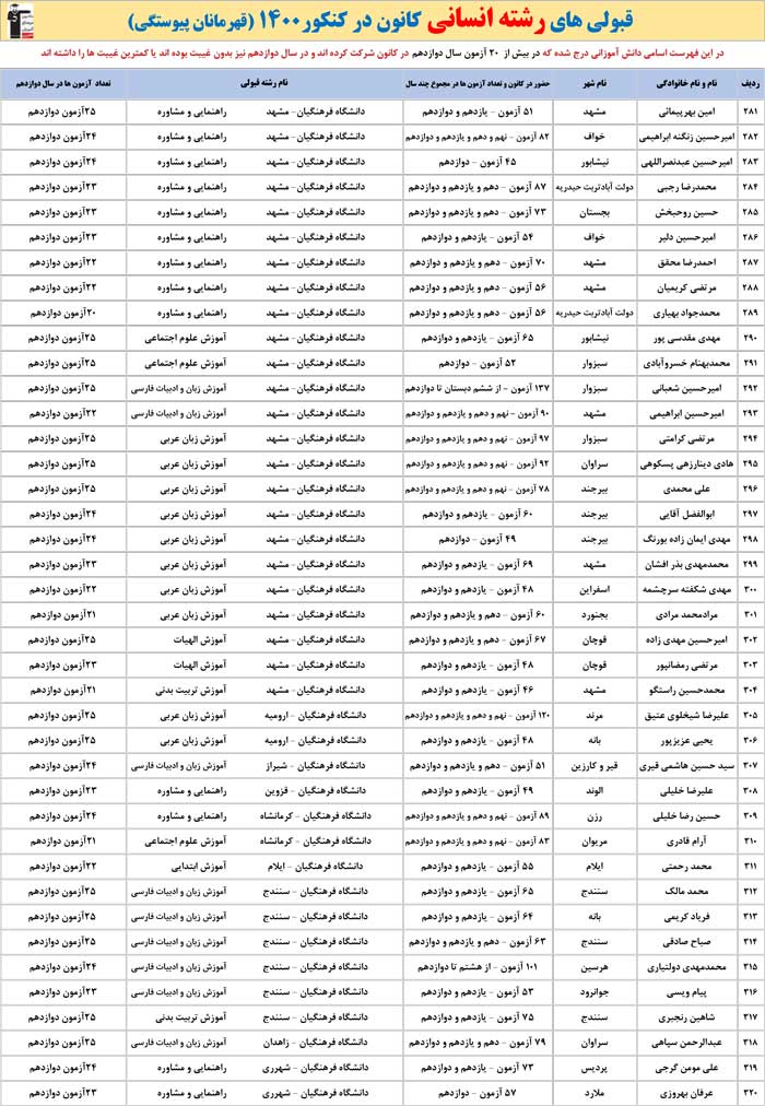 روش دوم : اسامی قبولی های گروه انسانی را به ترتیب حروف الفبا در دو فایل ضمیمه مشاهده می کنید، فایل اول : الف تا س و فایل دوم : ش تا ی