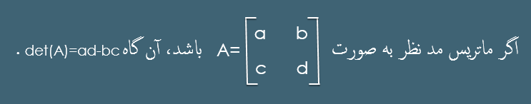 • برای 2 ماتریس مربعی و هم مرتبه Bو A داریم : det(AB)=det(A)×det(B)