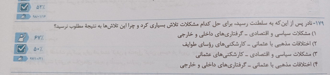 2- گرفتاری های داخلی و خارجی نادر شاه افشار.