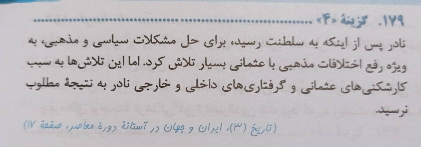 - علت به نتیجۀ مطلوب نرسیدن توافق ایران و عثمانی (در دورۀ افشاریه) :