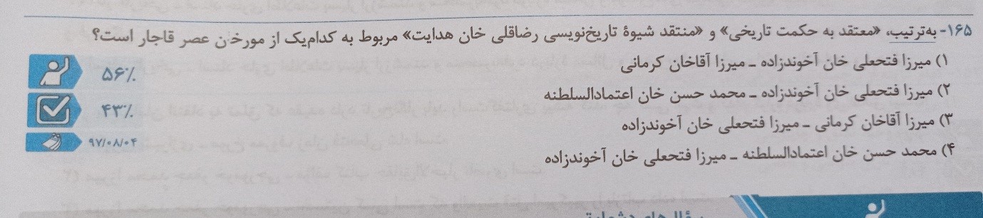 میرزا فتحعلی خان آخوندزاده : منتقد تاریخ نویسی سنتی – منتقد شیوۀ تاریخ نویسی رضا قلی خان هدایت.
