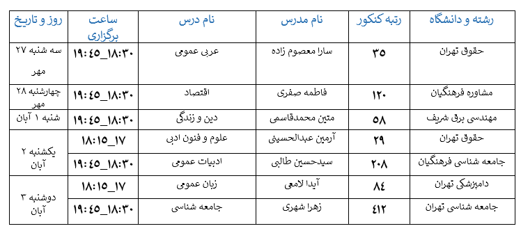 7- شما می توانید در پایان همایش ، سوالات درسی و مشاوره ای خود را از مدرس بپرسید.