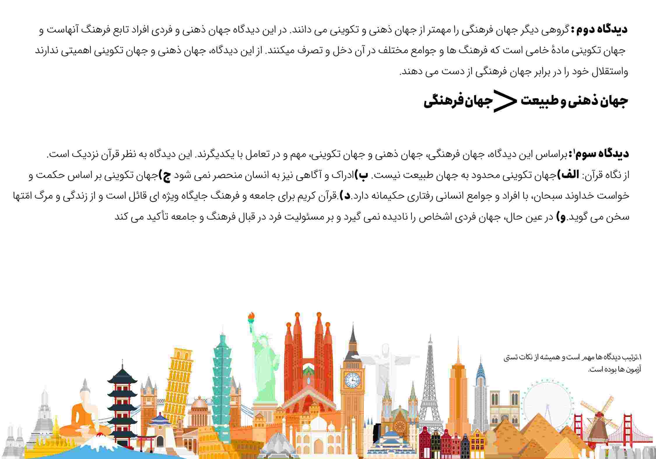 گزینههای 2 و 4 دیدگاه دوم و گزینۀ 3 ، دیدگاه اول به تعامل جهانها است . گزینه 1 پاسخ صحیح است .