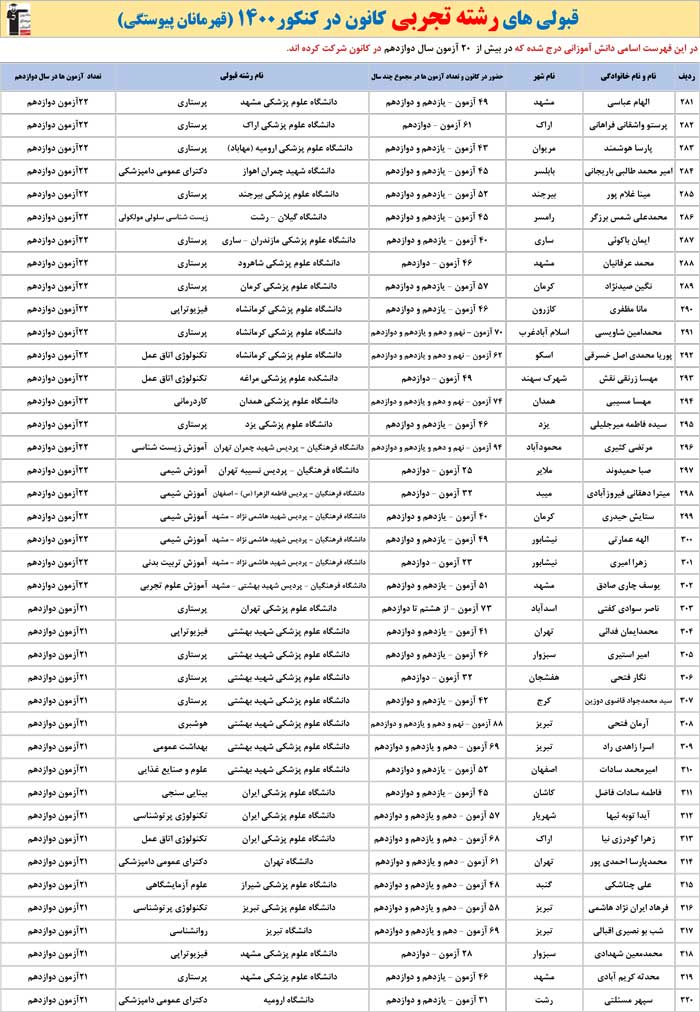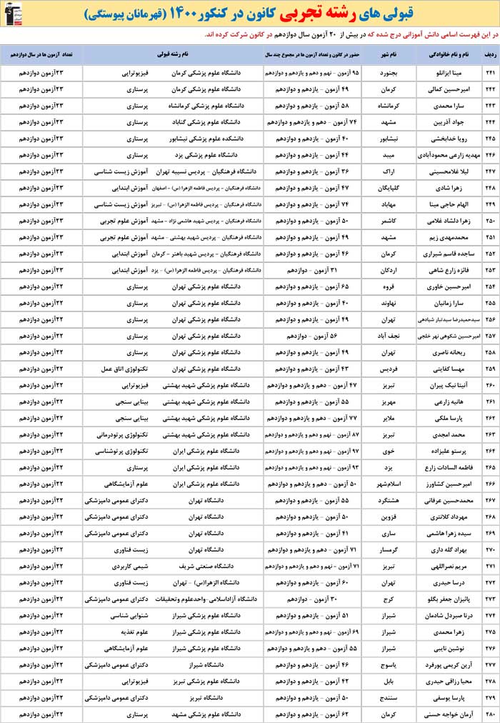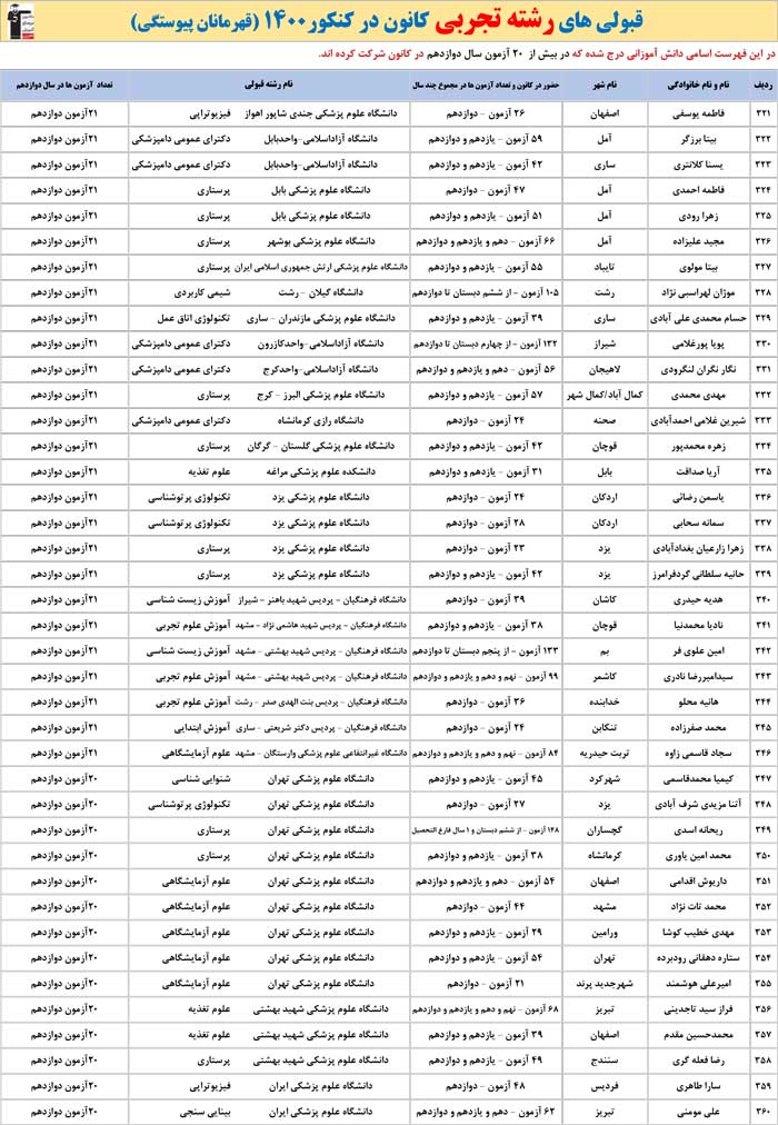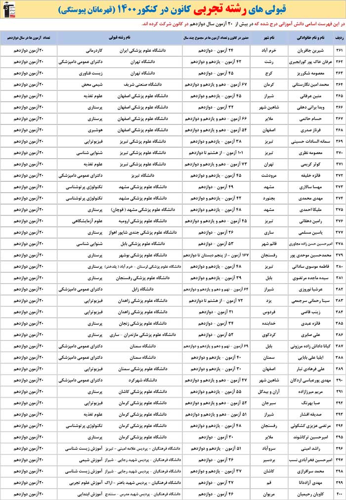 قبولی های 1400 کانون رشته تجربی ( غیرپزشکی ) را با سه روش می توانید مشاهده کنید:
