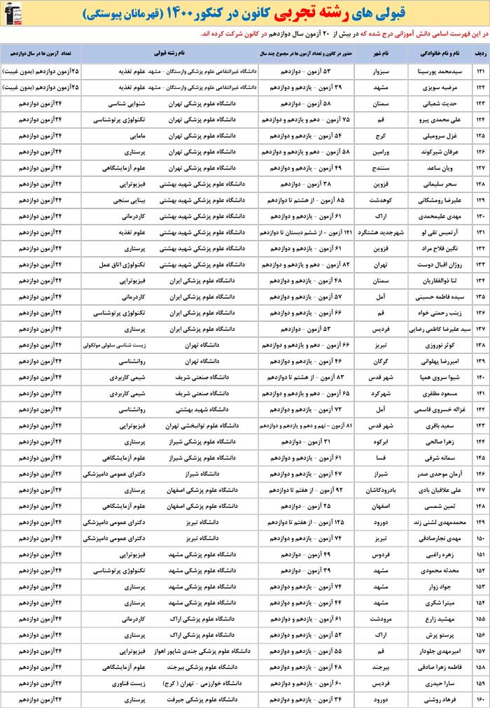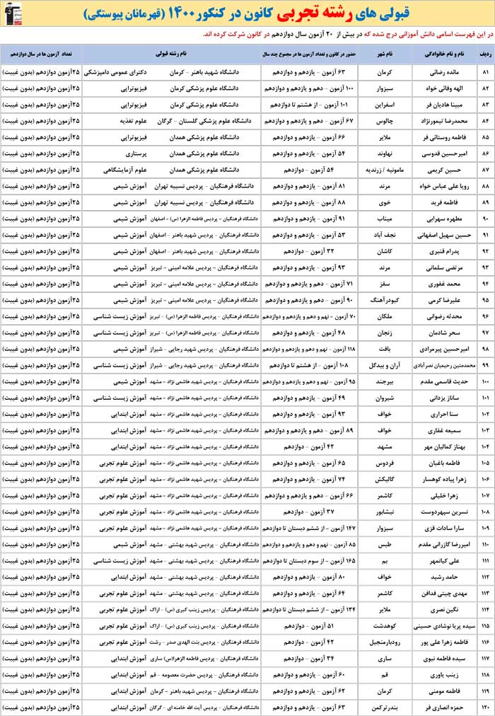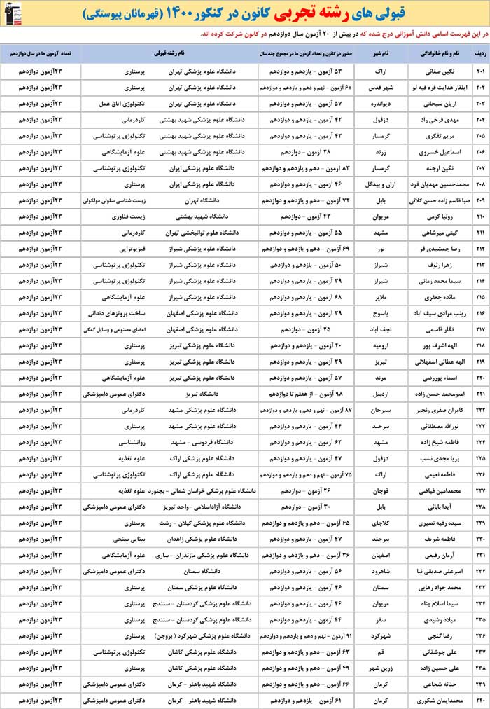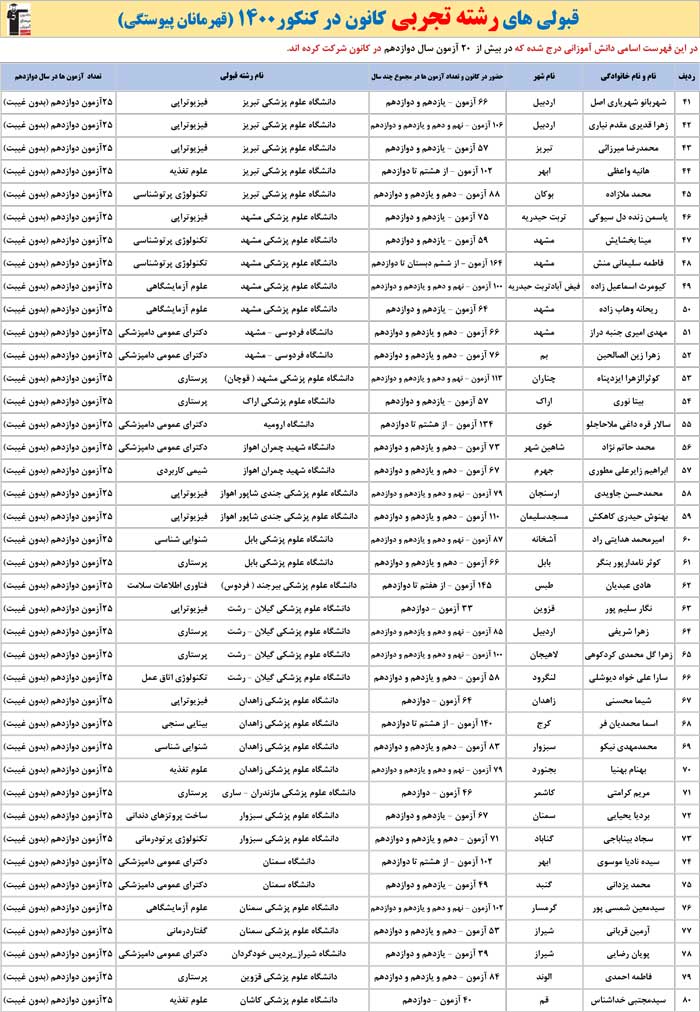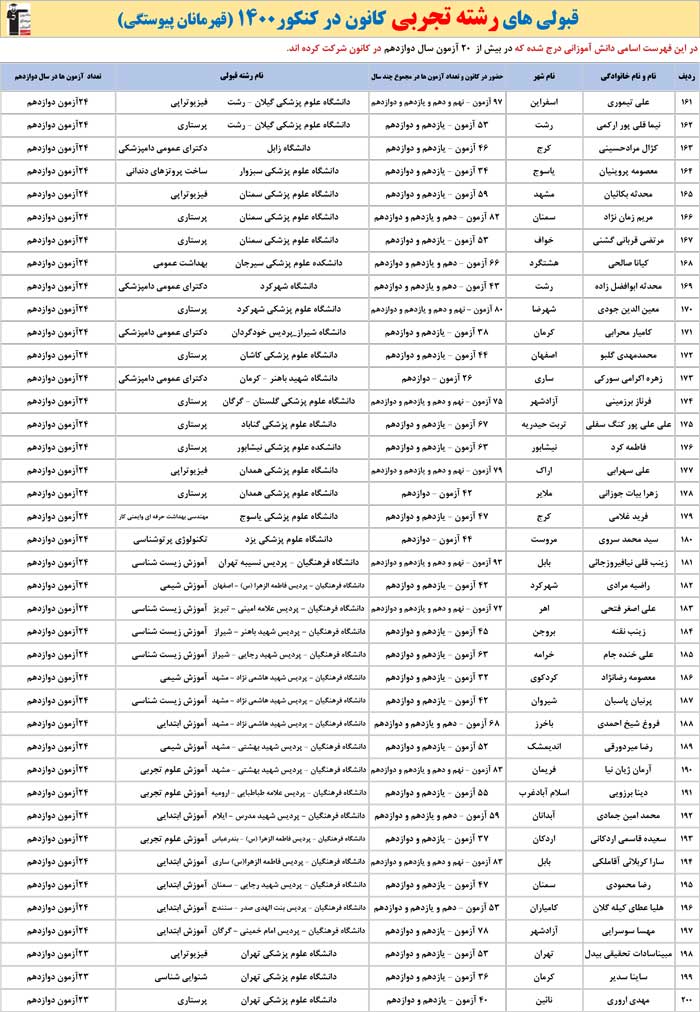 قبولی های 1400 کانون رشته تجربی ( غیرپزشکی ) را با سه روش می توانید مشاهده کنید: