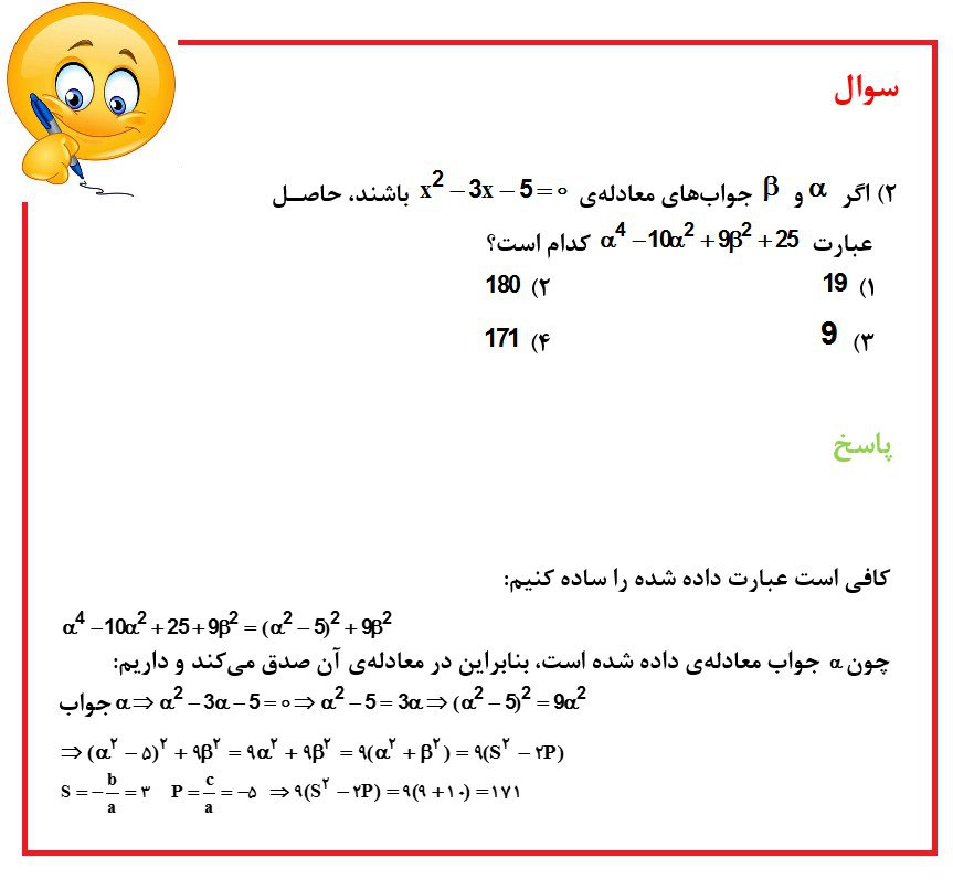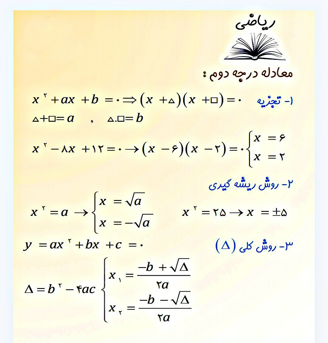 1. خلاصه درس کامل از مبحث معادلات درجه 2 ، گویا و گنگ