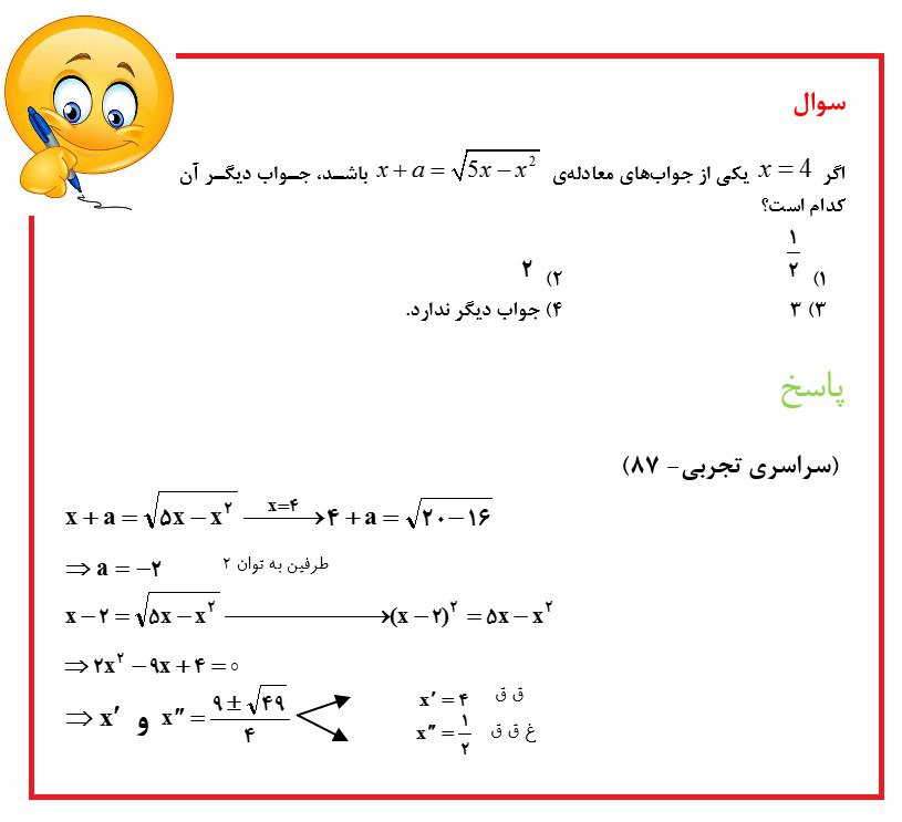 بخش سوم حل سوالات معادلات کنکور سراسری سالهای قبل
