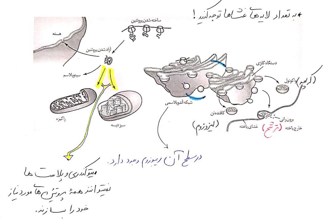- دقت کنید که هسته، میتوکندری و پلاست ها غشای دولایه دازند.