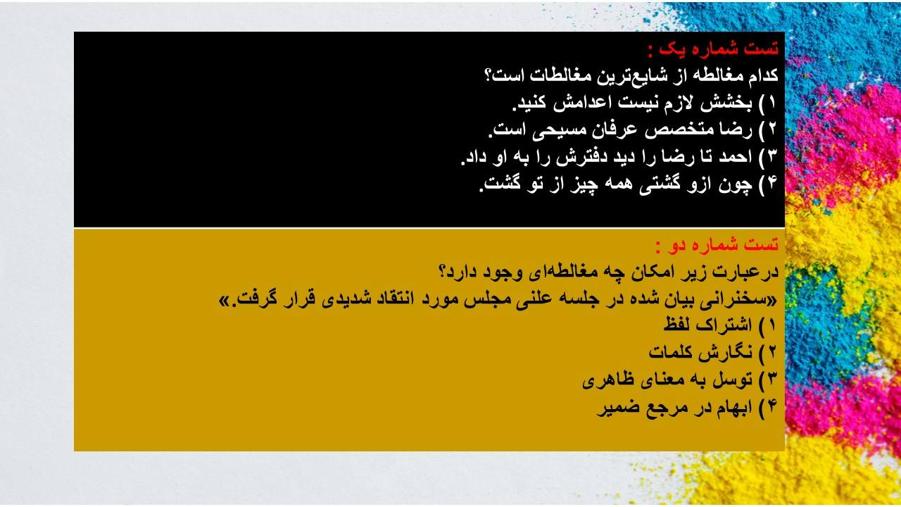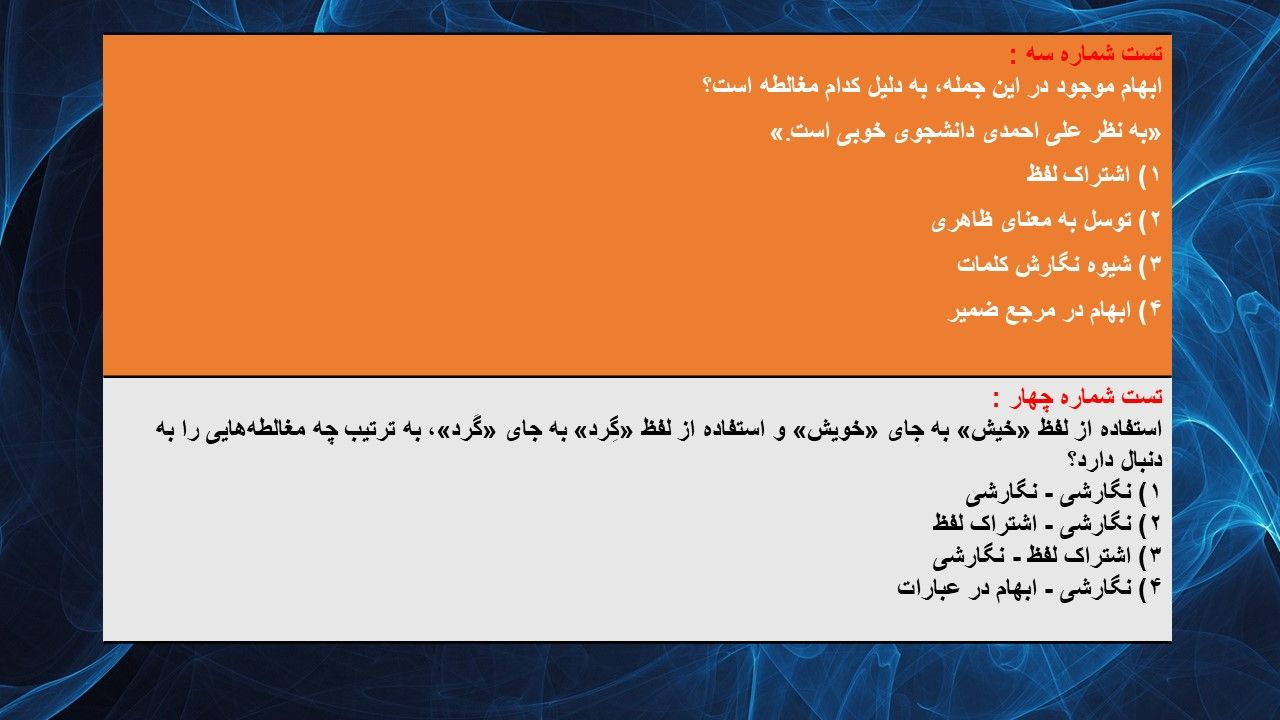 هردو مورد دارای مغالطه نکارشی کلمات است.گزینه ۱ پاسخ است .