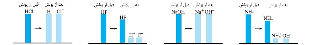 • نمودارهای زیر، شرایط مربوط به انواع اسیدها و بازهای قوی و ضعیف را نشان می دهد:
