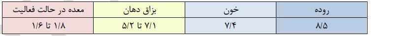 در جدول زیر، محدوده ی pH بعضی از قسمت های بدن را مشاهده می کنیم: