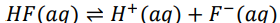 • نمونهای از سامانههای تعادلی، محلول بازها و یا اسیدهای ضعیف در آب است. در این محلولها به دلیل یونش ناچیز مولکولهای بازی یا اسیدی، میان اندک یونهای حاصل از یونش و مولکولهای یونیده نشده، تعادل برقرار می شود. برای نمونه در محلول هیدروفلوئوریک اسید تعادل زیر برقرار است.