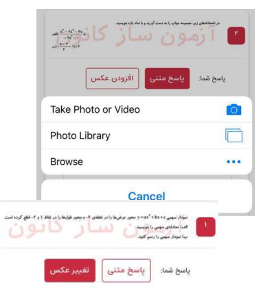 حالتِ دوم: ممکن است تایپ کردن برای شما سخت باشد. یا جوابِ سؤال به صورتِ شکل، جدول یا فرمول باشد؛ به گونهای که تایپ کردنِ آن برای شما امکان پذیر نباشد. در این صورت میتوانید پاسخ را با خودکار (پررنگ و خوش خط و خوانا) روی کاغذ بنویسید. سپس از پاسخِ خود عکس بگیرید و فایلِ عکس را با استفاده از گزینه ی «افزودنِ عکس» در پاسخ به سؤال بفرستید