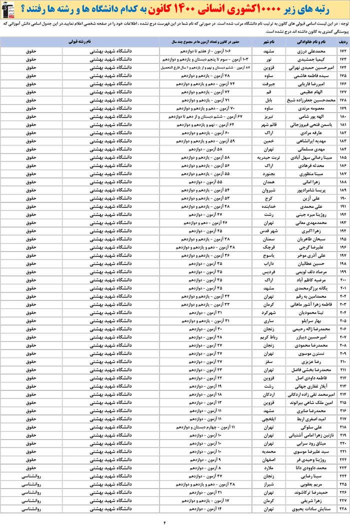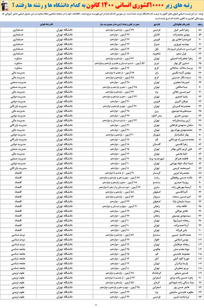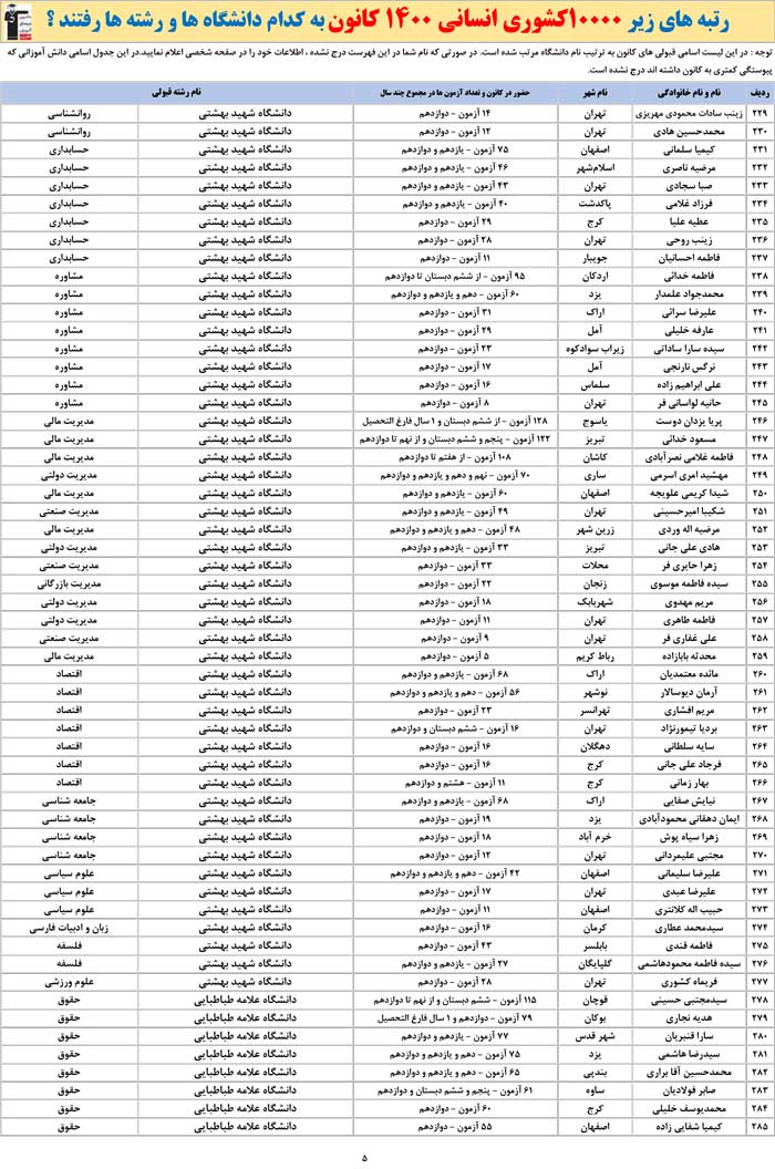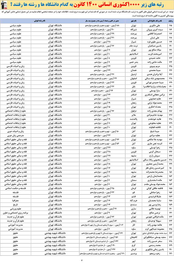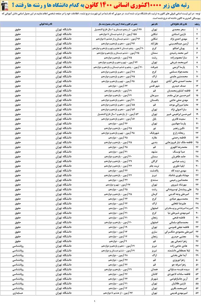 برترهای انسانی 1400 کانون به کدام رشته ها و دانشگاه ها رفتند ؟
