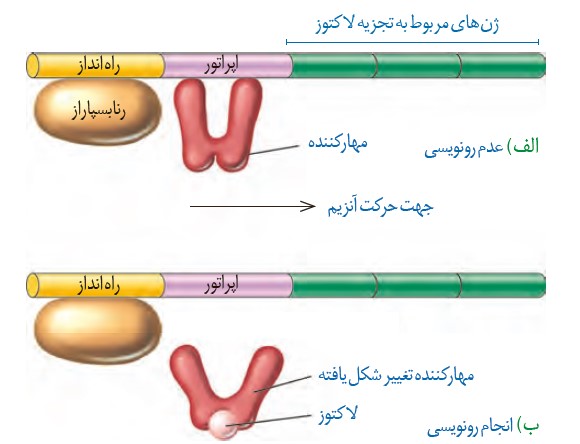 1- مهارکننده همواره به اپراتور تمایل دارد و این لاکتوز است که با اتصال به مهارکننده همواره به اپراتور تمایل دارد و این لاکتوز است که با اتصال به مهار کننده در آن تغییر شکل می دهد.