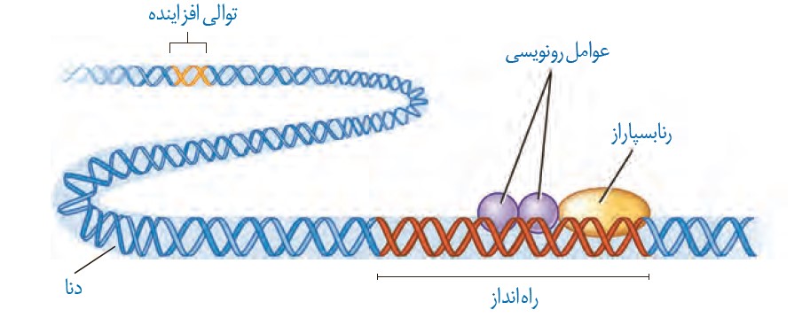 - دقت کنید با وجود اینکه توالی افزاینده می تواند در فاصله دورتری از ژن قرار بگیرد، ولی در هنگام رونویسی همه آنها می توانند در مجاورت ژن قرار بگیرند.