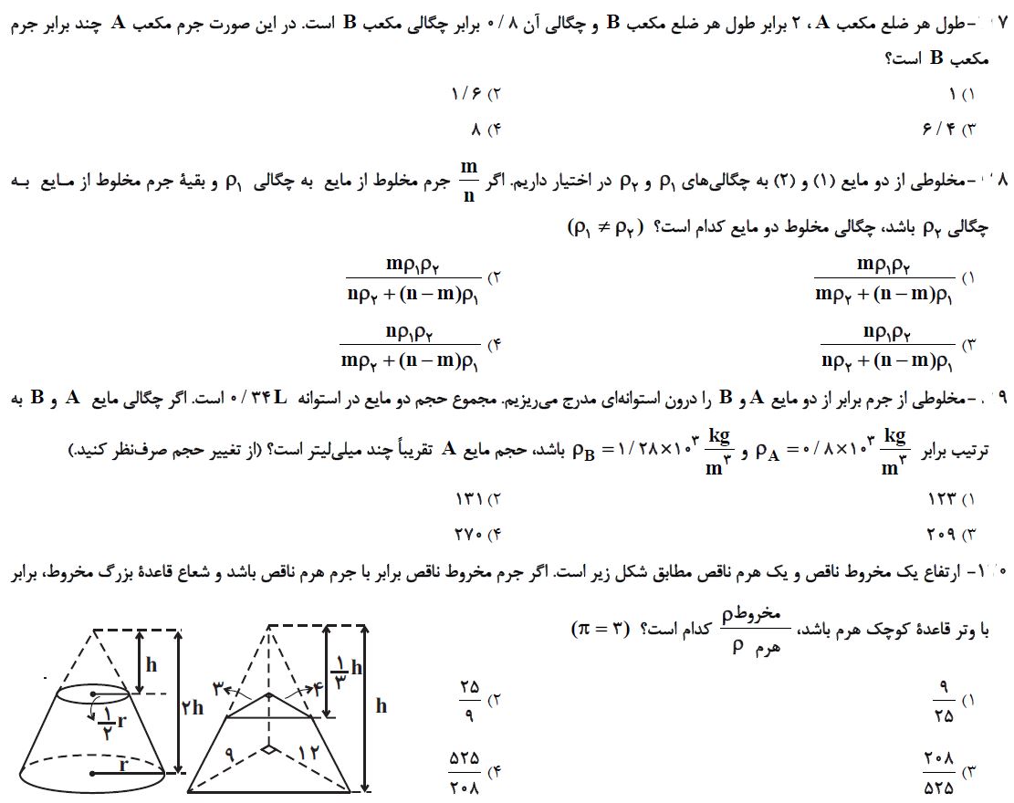 10 سوال فیزیک دهم که در ادامه برای شما قرار دادیم، جمع بندی مباحث آزمون 6 آبان بوده و برای آمادگی بیشتر شما در این آزمون توسط فاطمه احدزاده رتبه 373 رشته ریاضی سال 95 انتخاب و برای شما قرار داده شده است. بعد از مطالعه ی کتاب درسی و درسنامه های آمادگی آزمون 6 آبان، توصیه میکنم حتما این سوالات را حل کرده و جواب های خود را با پاسخنامه بررسی کنید.