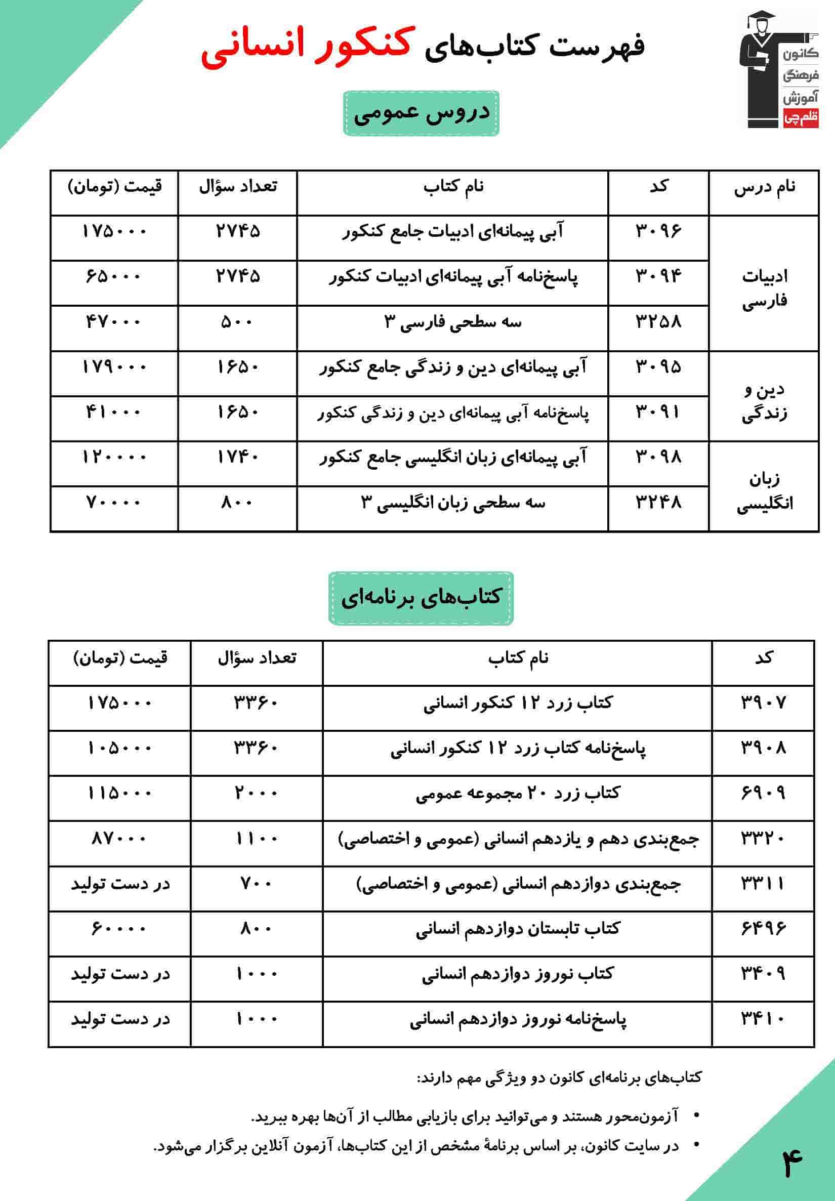 فهرست کتابهای دوازدهم انسانی (+ ویژگیها و قیمت) در زیر میآید: