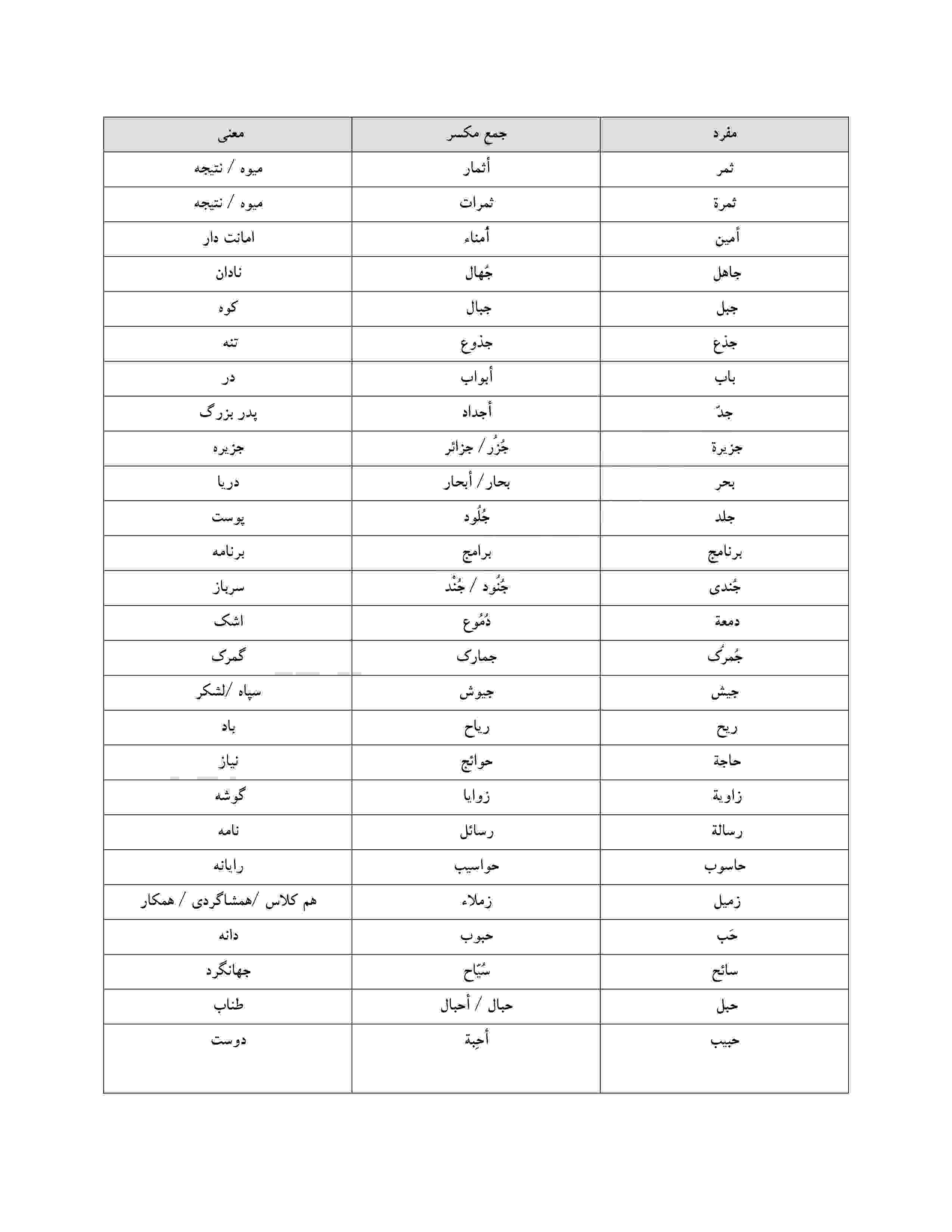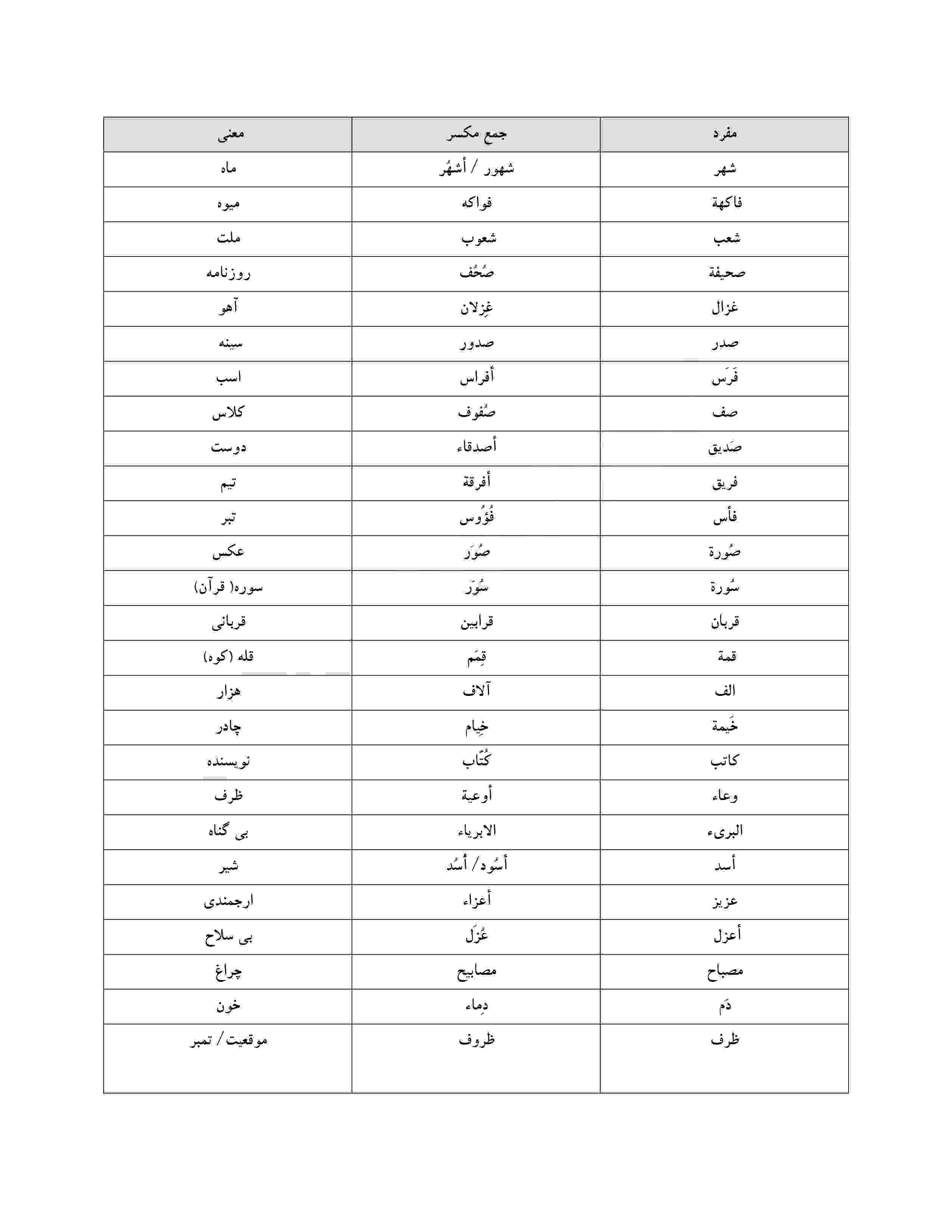 در این مطلب سعی کردیم اول تست هایی را برایتان بیاوریم ، بعد پاسخنامه تشریحی را قرار دادیم ، در آخر هم مجموعه ای از جمع های مکسر کنکوری را برای شما قرار دادیم .