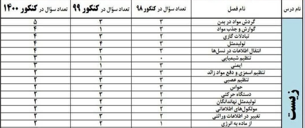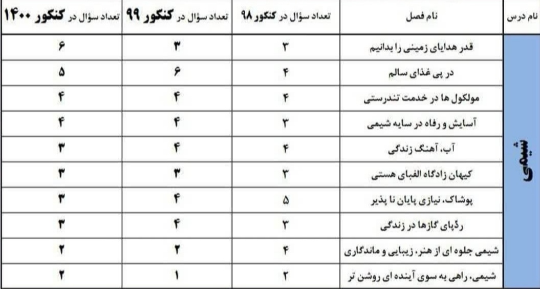 دانش آموزان عزیز رشته تجربیسلامدر این مطلب بودجه بندی تمامی مبحث های درس های اختصاصی رشته تجربی در کنکور سه سال اخیر نظام جدید ذکر شده است.