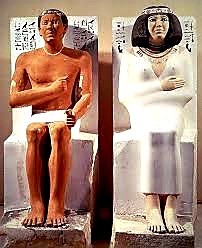 نکته: مجسمه ساز مصری از تجسم پیری و بیماری و نقص جسمانی پرهیز می کرد. مردان را با نیرو و اطمینان دوره ی میانسالی، و زنان را با شادابی و لطافت عنفوان جوانی نشان می دهد.