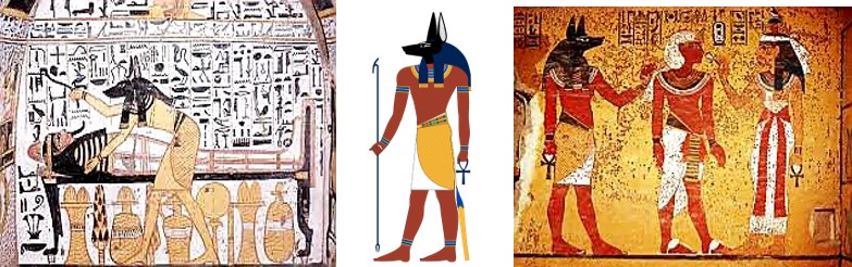 در اعتقاد مصریان باستان آنوبیس خدای محافظ گورستان ها و خدای مرگ است. آنوبیس به شکل انسان با سر شغال به تصویر در می آید.
