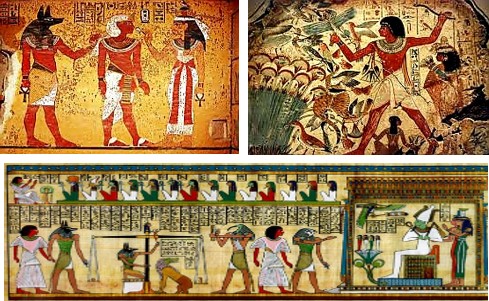 نکته: نقاشی های دیواری و نقوش روی کاغذ پاپیروس درون مقبره ها ← مراحل زندگی پس هز مرگ را نشان می دهد که به کتاب مردگان شهرت دارد.