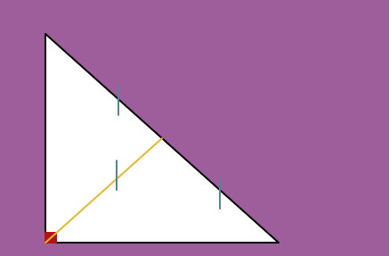 در هر مثلث قائم الزاویه، طول میانه وارد بر وتر، نصف طول وتر است.