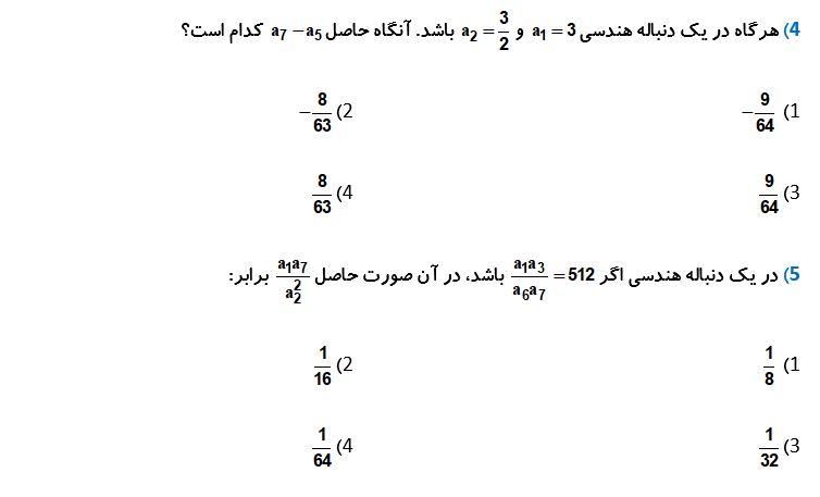 دوستان خوب دهمی سلامدر این آزمونک 5 سوال ریاضی دهم(به همراه پاسخ) از مبحث دنباله هندسی، توسط توسط مهدی حاجی نژادیان رتبه 13 دکترا عمران برای شما آورده شدهاست.برای حل سوالات بیشتر، حتما تستهای کتاب آبی و سه سطحی ریاضی دهم را تمرین کنید.