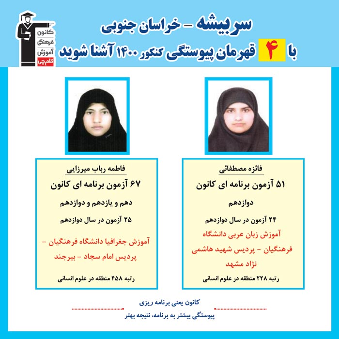 با 4 نفر قهرمانان پیوستگی سربیشه در کنکور 1400 آشنا شوید