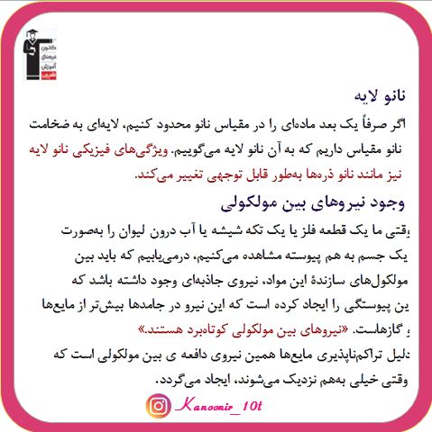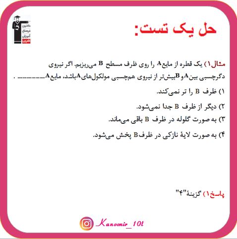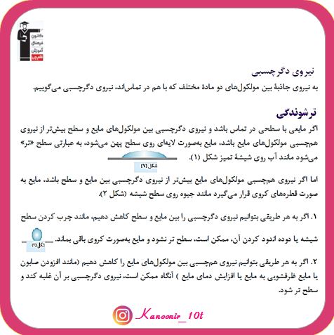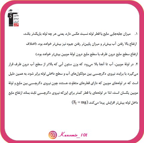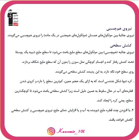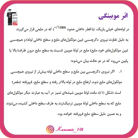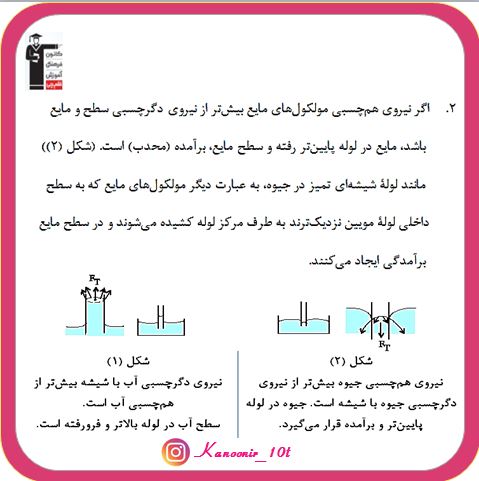 در این درسنامه به نیروهای بین مولکولی پرداخته شده است و مفاهیمی همچون همچسبی و دگرچسبی و اثر مویینگی، به همراه تست بررسی شده است