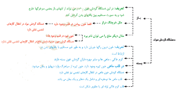 1)خون-یک قلب با توانایی انقباض 2)خون- سرخرگ متصل به شبکه مویرگی