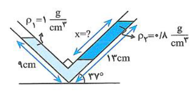 با توجه به شکل زیر اگر مایع ها در حال تعادل باشند x چند سانتی متر است ؟
