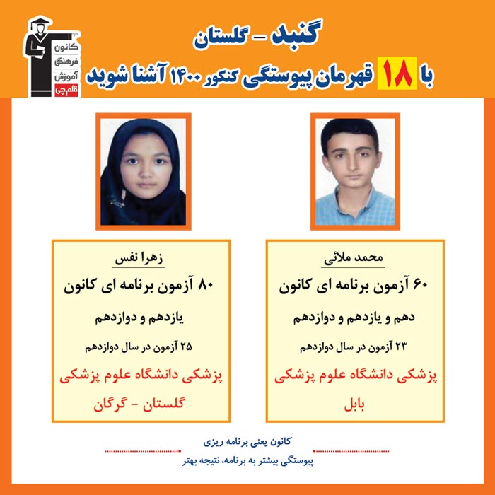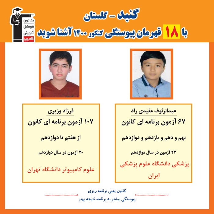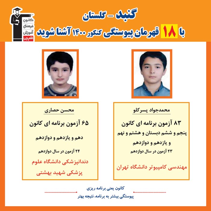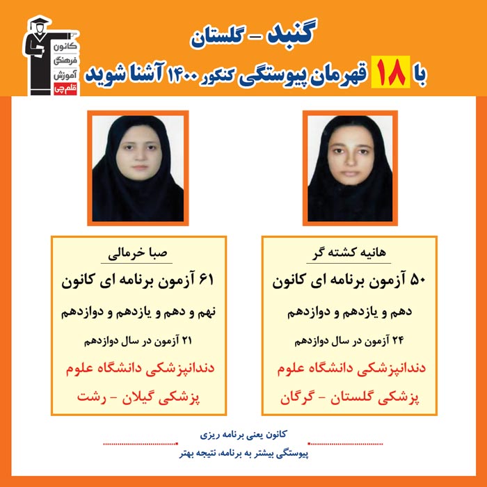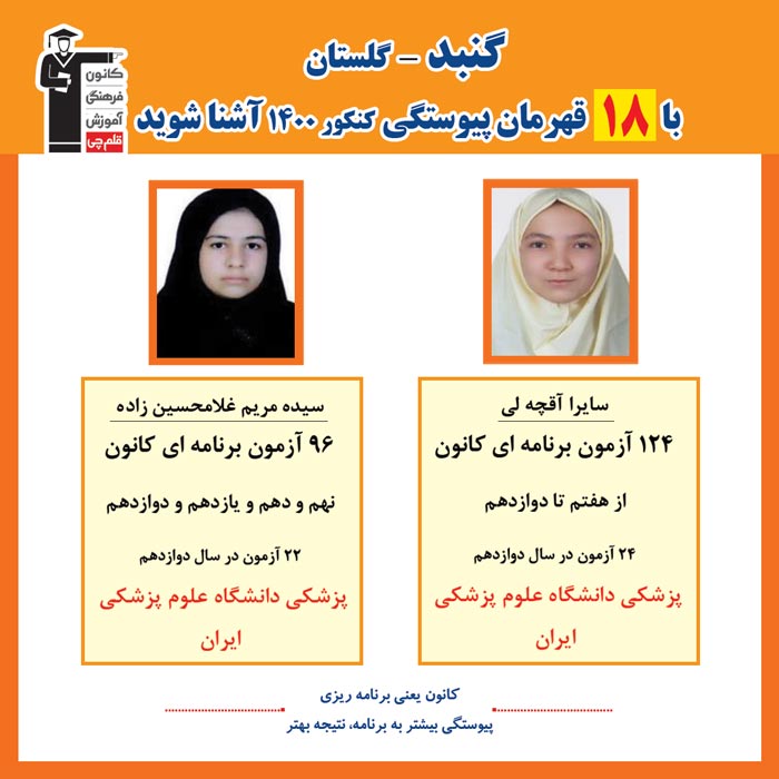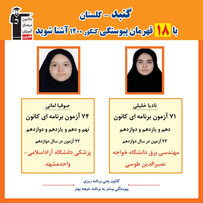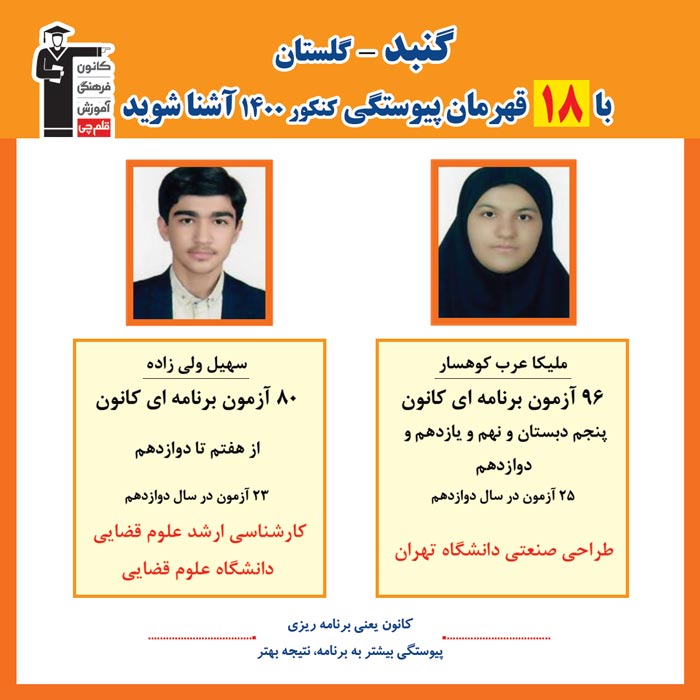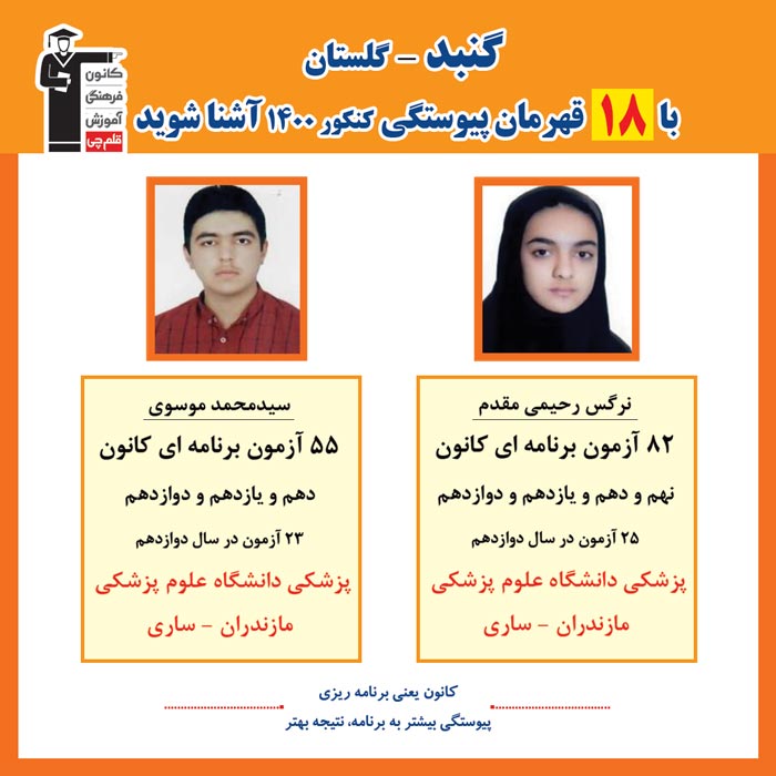 با قهرمانان پیوستگی شهر گنبد در کنکور 1400 آشنا شوید
