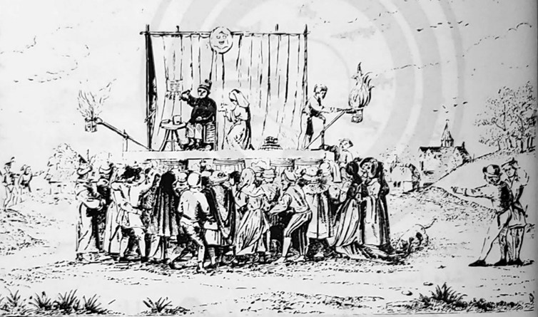درقرون وسطی نمایشها روی گاری هایی به نام پیجنت اجرا می شد. از نمای کلیساها به عنوان دکور استفاده میکردند.