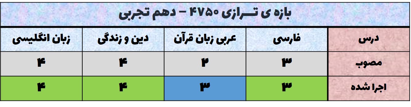با عرض سلام خدمت شما دانش آموزان عـــزیز دهمی ریاضی و تجـربی جدول زیر مشخص می کند که دانشآموزان محدوده ترازی 4750 از هر 10 سوال به چند سوال (در هر درس) توانستهاند پاسخ دهند: