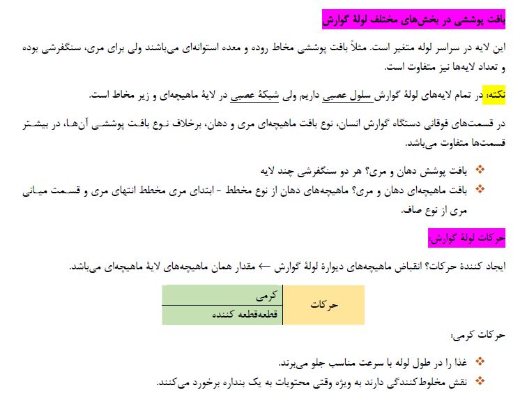 گوارش و جذب مواد - زیست دهم - درسنامه - فاطمه صمدی