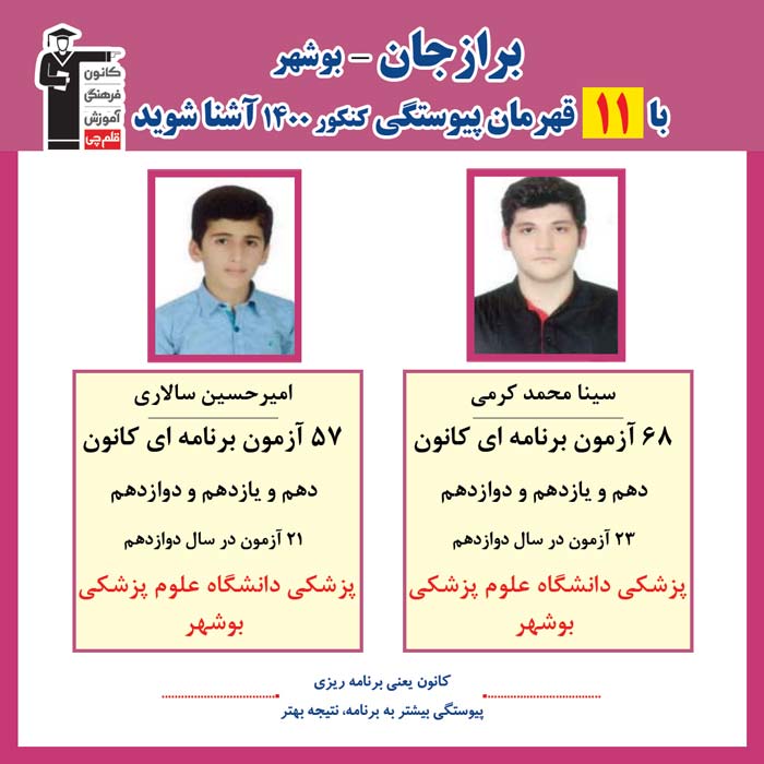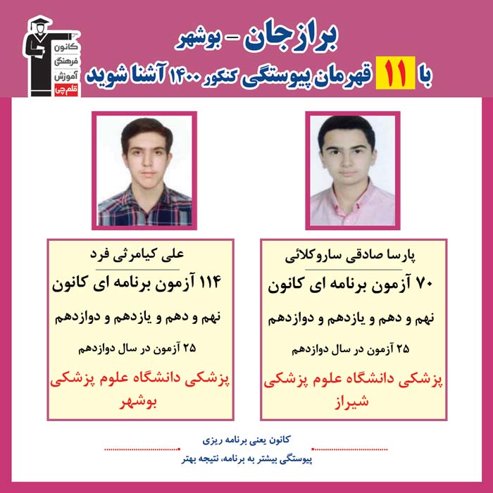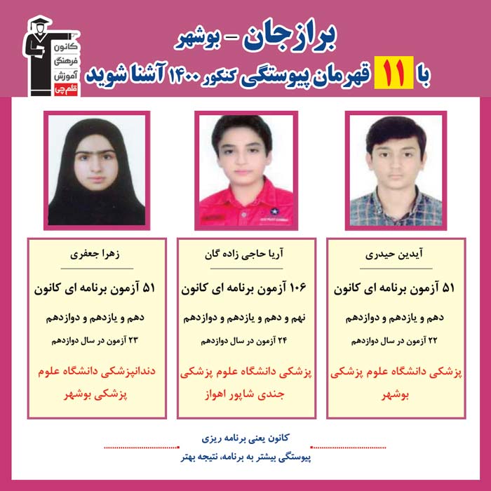 با 11 نفر قهرمانان پیوستگی برازجان در کنکور 1400 آشنا شوید